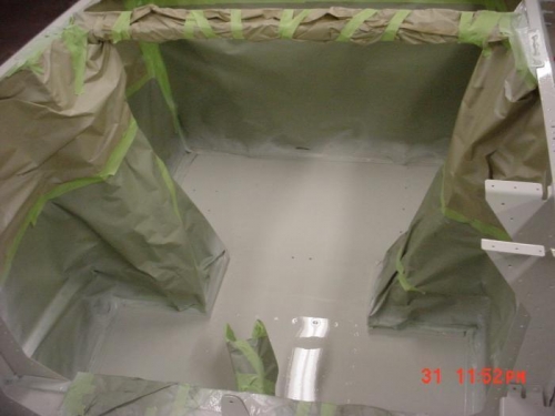 MASK OFF ALL INTERIOR PARTS THAT DID NOT GET PAINT. THIS TOOK 6 HOURS . MIXED UP PAINT AND SPRAYED INTERIOR. USED NASONS URETHANE ALPINE WHITE