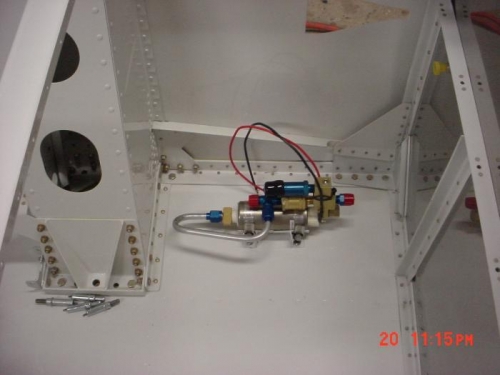MOUNTED FUEL PUMP BRACKETS TO FLOOR AND MOUNTED FUEL PUMP.