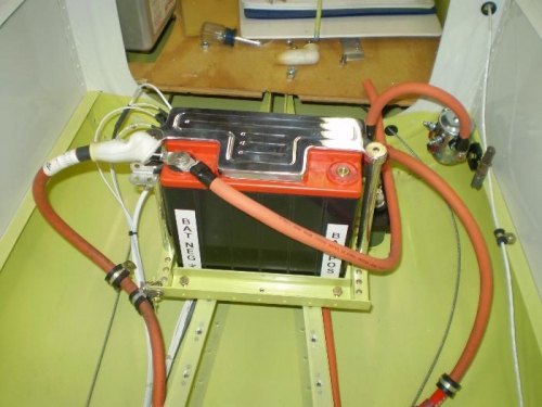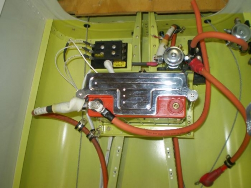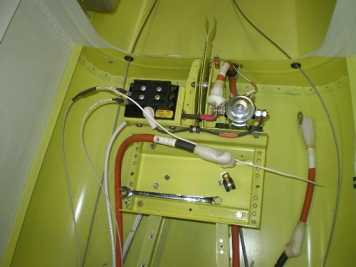 FABRICATED BRACKET TO MOUNT ALWAYS HOT BATTERY BUS IN REAR AT BATTERY.