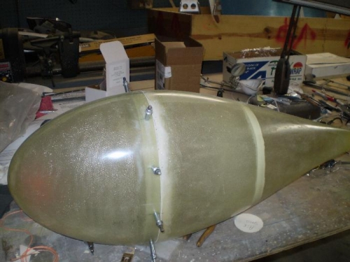 STARTED WORKING ON WHEEL PANTS. TRIMMED EDGE OF BOTH WHEEL PANTS SANDED EDGES MATED UP FRONT AND REAR HALFS.