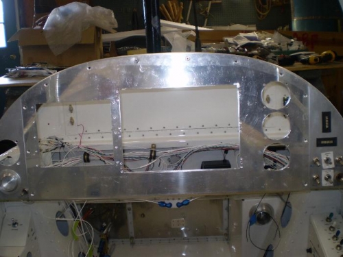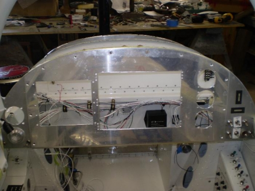 LAYED OUT PANEL AND MADE CUT OUTS FOR RADIO TRAYS. TAPED RADIO TRAYS TOGETHER AND ALIGNED TO PANEL.