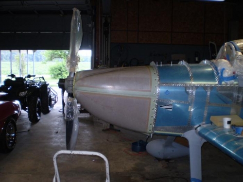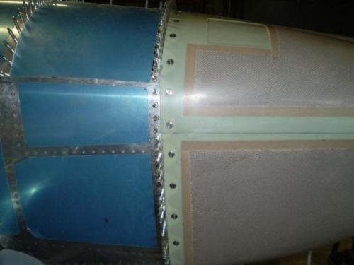 FIT BOTTOM COWLING DRILLED HOLES FOR SKYBOLT FASTENERS. CUT BOTH SIDES OF BOTTOM COWL TO MATE UP TO TOP.