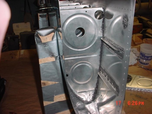 INSTALLED REMAINING RT TANK RIBS AND SEALED THEM. TOMMY NEWKIRK HELPED BUCK RIVETS.
