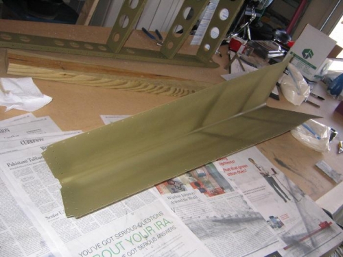 Primed the interior surfaces of the skins and primed the ribs where I had smoothed the sharp edges. Dusted the entire VS frame with another light coat of primer.