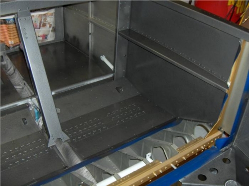 Using Rustoleum Hammer Grey style rattle can, painted interior surfaces of cabin before permenantely installing plumbing.