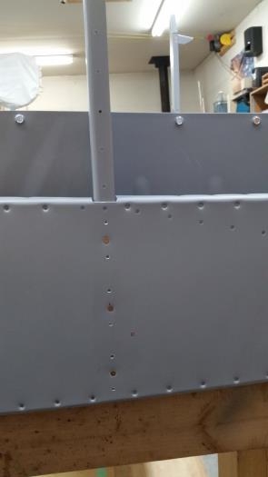 I installed "keeper" rivets in the sections to keep them together so that everything will line up when the skin is installed later.