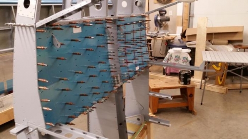 Deburring and dimpling mid fuselage skins