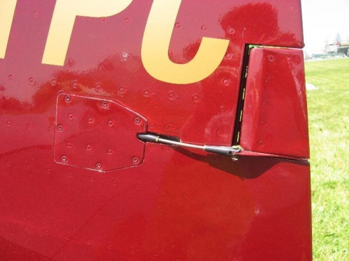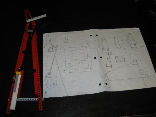 I am toying with the idea ot installing rudder trim. I am debating whether to build it into the skins before putting the skins together or modifying the rudder after. I included some trim ideas that I got from Airventure 2008. I like the idea of the red one with the hinge on the opposite side of the actuating arm to give less throw of the tab for the movement of the servo. I also like the actuating rod away from the center, so as not to disturb the airflow over the tab. I used Lego to get an idea of how much throw I would get from the 1.2" of servo travel (the white and gray bar near the bottom of the picture represent the servo. I was actually able to make the Lego model very close to scale.