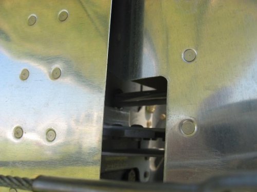I wanted to include plastic bushings for wires to go through to get to the rudder light and future rudder trim servo. I studied the drawings and other peoples websites and some photos that I took at Airventure 2008. The photos showing the wires between the VS and rudder is from the pictures at Airventure. I concluded that this would also be the route that I would take with a slight modification to the rudder stop brace inside the tailcone.