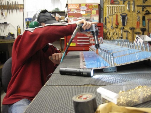 Riveted the elevator halves together