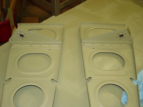 Torque tube bracket and flap hinge bracket assembly. Used the C-frame for riveting, gave great results on the flap hinge brackets.