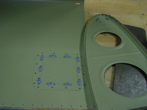 Riveted up the nutplates for the stall access cover . Riveted on the top restraining strip for the landing lights. Dates 9/3 to 9/4/2012.