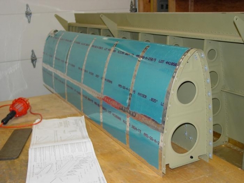 Finished riveting up the left outboard leading edge, started on right side. Dates 9/7 to 9/8/2012.