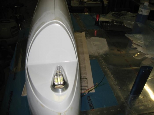 Got the nav/strobe lights mounted. Worked on the wiring inside the wingtip. Got the landing lights wired in the left wing. Bunch of misc. body work on the wingtips, this is a never ending issue. At some point you have to give up and call it good enough. 8/26 to 9/18.