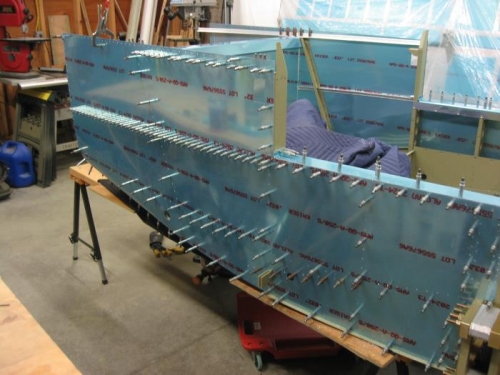 More drilling of the mid side skins to the underlying structures.