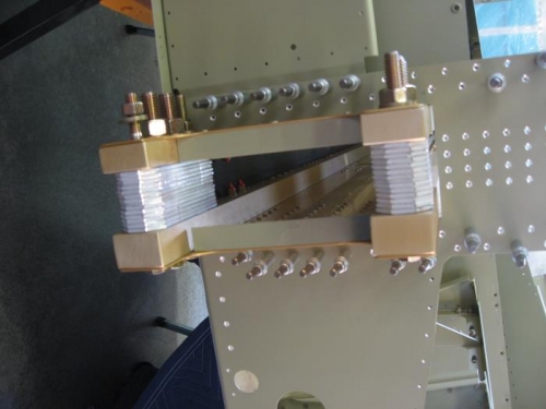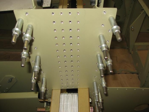 Countersunk rivet holes in the center section side plates and bulkhead side channels.