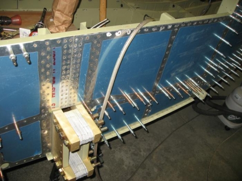 More riveting in the wing root area on the left side. Riveted some of the AN470 rivets too.