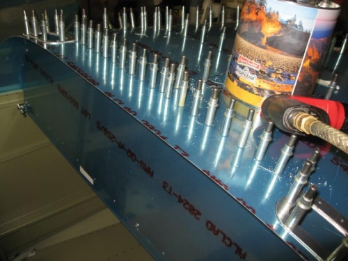 Drilled the skin to the substructure. Drilled the instrument panel attach flanges and their nutplates.