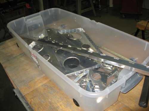 Finished dissassembling and deburring/dimpling on 10/1 and 10/5. Parts ready for alodining.
