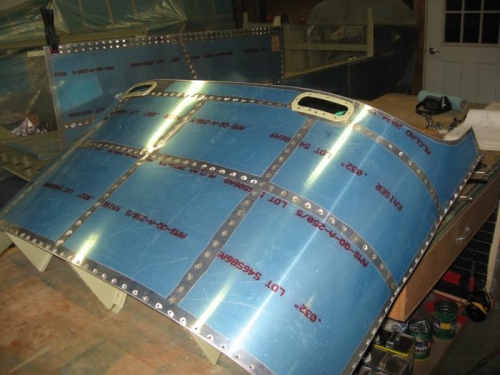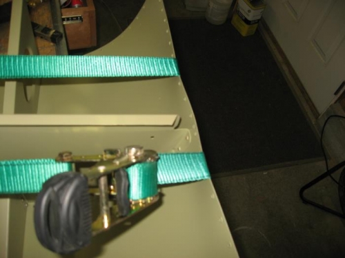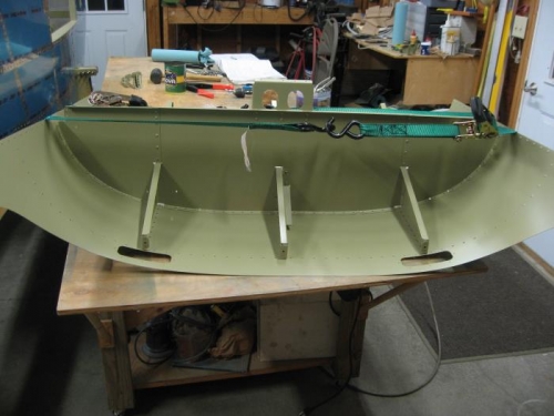 Finished riveting the top skin on to finish this section. Used some ratchet straps to help bend the skin around to make it line up with the ribs better.
