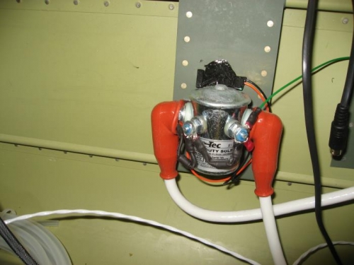 Wiring for the ground power connection. There was a problem with the first solenoid I bought, there was an internal short that prevented the solenoid from opening once power was applied to the GPU plug. This was replaced under warranty even though it had been mounted in the tailcone for a year.