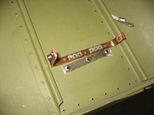 Got the airframe ground put together and mounted in the tailcone. Put some dielectric grease on the bare aluminum to copper interface to hopefully prevent corrosion at that interface. This was tightened down a lot to create a gas-tight interface.