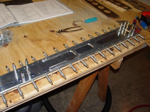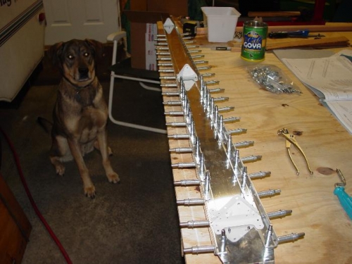 Finished up 6-2-3 then deburred the VS-1008 Doubler and reassambled the rear spar assembly. Turned out a small sanding drum on the pneumatic die grinder was the best way to take out the shear marks on the doubler, especially on the inside corners. Did most of it with the file before I thought of trying this, would have saved me half an hour or so. Finised the edges with the little scotch-brite wheel on the die grinder. All ready to match drill the rest of the holes, which will finish up 6-2-4.