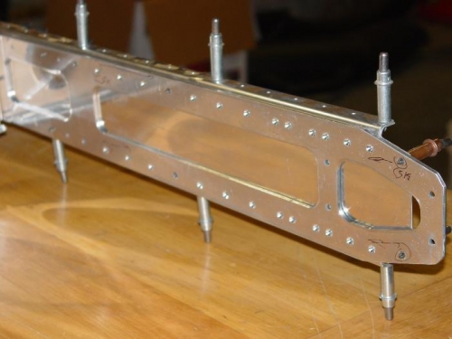 Finished up some deburring on the rear spar assembly. Fit the rest of the vertical stab skeleton to see how it will look. My helper wasn't much help, but the dog stayed awake.