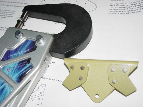 I finally got to drive (ok squeeze) my first rivets!! Now it feels like I am building an airplane. I had agonized over whether to spend the money on the expensive 'Main Squeeze' squeezer, but now I am glad I did. It takes quite a bit of force to set an AD4 rivet with this squeezer, and if the mechanical advantage compared to the competition is as much better as is claimed, I wouldn't want to be using the other ones. I also rationalized that it is a whole lot cheaper than a pneumatic squeezer, so actually I *saved* a lot of money by buying this one.