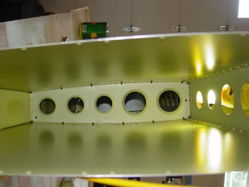 The other surprise was the rivets on the rear spar flange in the area of the lower rudder hinge bracket. The squeezer couldn't get to them and only the thin edge of the footed bucking bar could get on the rivet squarely. It took a couple tries to get a good shop head, and the primer got dinged in the process. I will touch this up when priming the parts for the rudder.