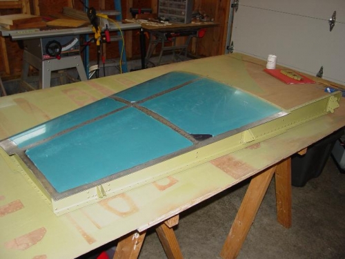 Finished up the assembly of the vertical stabilizer. There were a couple tougher spots in the riveting. The worst is the forward spar above the middle in-spar rib. The skin is already partially attached at this point, and needs to be unclecoed and gently bent out of the way to get a bucking bar (and attached arm) inside the structure. Only a few of the rivets turned out 'perfect' in here, but they were all acceptable. I did have the bucking bar slip off the rivet a couple times and put some minor dings in the skin. I tapped these in with a small hammer, and will probably fill the resulting small dent before painting. It was helpful to put some duct tape over the end of the bucking bar to prevent it from scratching the primer.