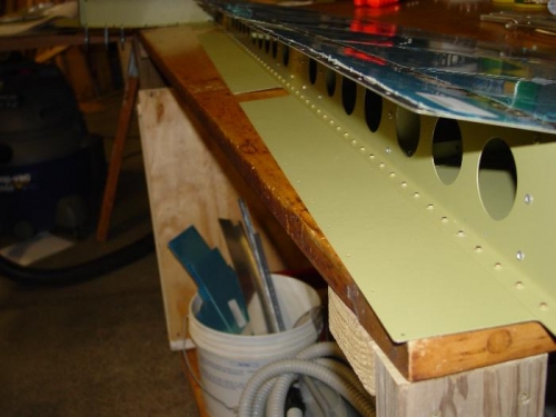 Riveted the spar to the shear clips. riveted the top and bottom ribs, and the counterbalance rib, to the spar.