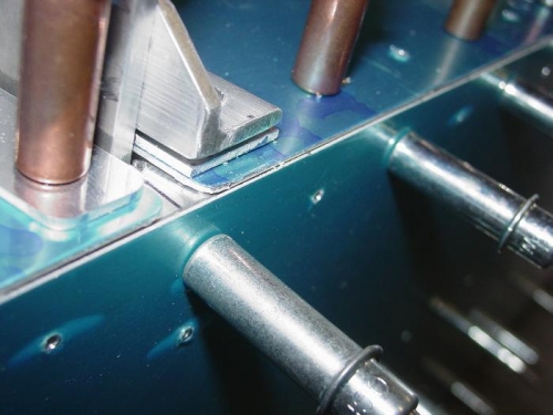 Match drilled the aft deck into the longerons. Match drilled the attachment bar support angle and the up elevator stop into the aft deck and longerons.