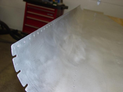 Started dimpling the skins. There are a couple of tough spots on the side skins because of their curvature. I used the squeezer where I could but most were done with the c-frame.