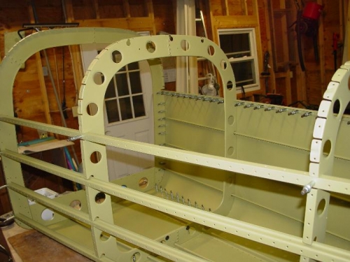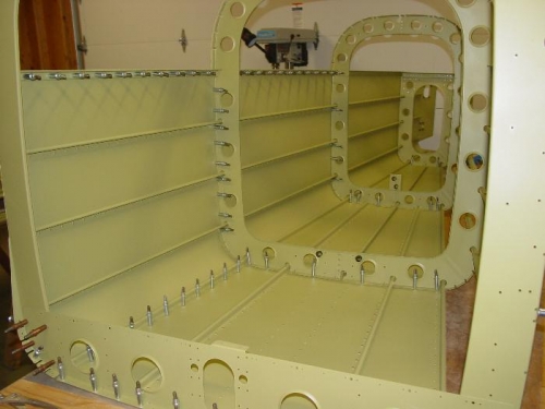 Started Riveting the stiffeners to the side skins. Again, everything has to be in place before riveting. I continued with the back-riveting by rolling the tailcone over on its side