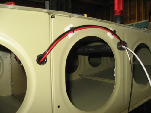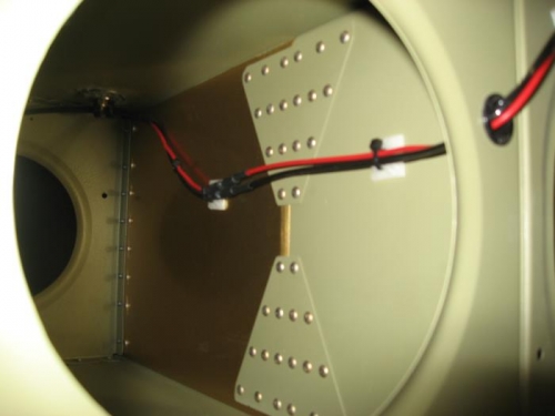 Wiring the landing light power. It took a bit of messing around to see how to do this neatly and securely. My goal is to have no motion of any wires if possible, though there are a few places where there will be more slack than I would like. This is my first activity with my demolished elbow, couldn't do anything more physical than this.