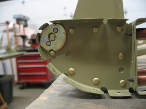 I had made a mistake in drilling one of the nose rib assemblies for a flap, so to fix it I added a large AN washer to reinforce that area. The washer had to be modified to avoid overlapping a rivet. Should be stronger than the original.