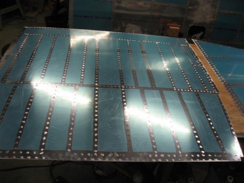 Deburring of bottom skins. Dimpling of ribs. This took off some of the primer but I will touch up the dimples before riveting.