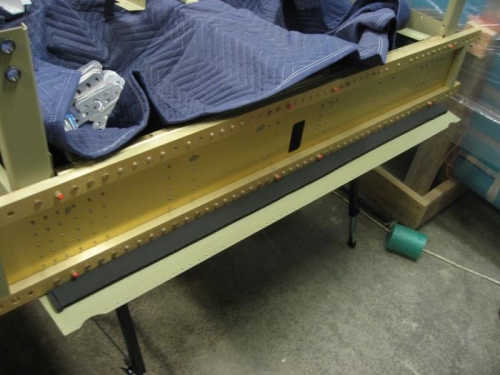 Riveted the mid seat rail supports. Cut a piece of insulation for the space between the spar carry through bulkheads, as I won't be able to get to this spot easily after joining the forward and mid fuselage assemblies.