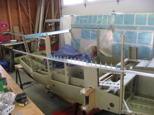 Mid fuse longeron attachment to the baggage door seals and seat back were assembled and drilled.