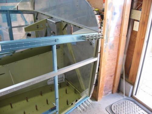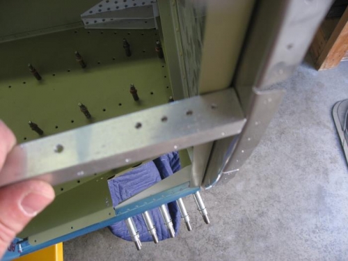 Finished drilling the side skins and removed. Drilled the rudder pedal attach holes in the longeron.