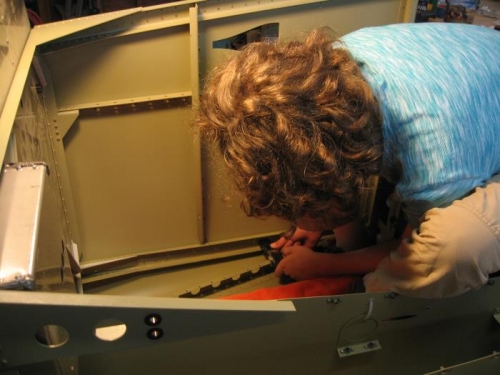 Riveting the right forward side skin lower rivets. Needed some bucking help here.