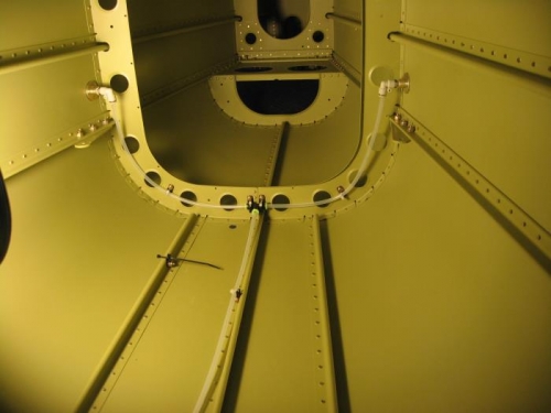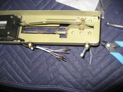 Worked on the wiring for the elevator trim. I put a hole in the side of the elevator trim mount and put a bushing in it to run the wires out from the trim motor. Then I added cable tie mounts to hold the wires in place. The wires for the aft nav lights will be run with these wires and tied together for added support