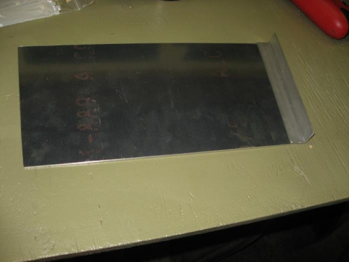 Started working on the ADAHRS mount. I'm using a heavy piece of aluminum as the base and sides, which will be riveted to the stiffeners on the top of the tailcone. It's about 12" wide though it will taper due to the taper in the stiffeners. I'm using 1/8" thick angle to make stiffeners. Probably overkill but I want this to be solid as a rock.