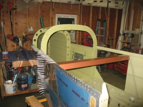 Did some drilling and dimpling on the F-1006 bulkhead. Reattached the tailcone and did some drilling around the baggage door.