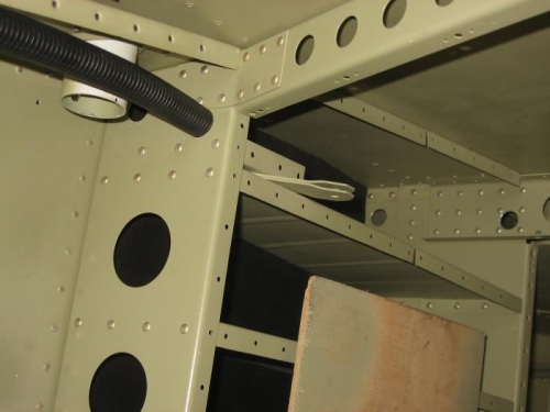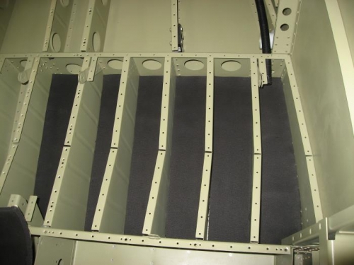 Finished drilling holes for conduit run from tailcone to wing root area. Got the insulation dry fit into the baggage area.