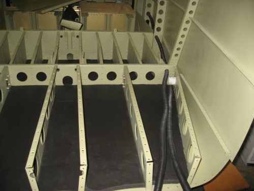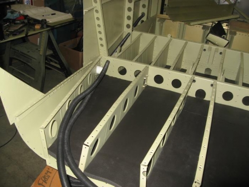 Installed the insulation under the baggage floor, except for the aft-most 5 inches or so which will interfere with riveting the tailcone to the fuselage. Ran the conduit for the wiring and static plumbing under the baggage area and into the wing root area.