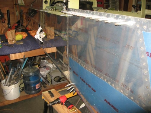 Riveting of the side skins to the tailcone. I could do this part by myself but I will recruit Lance to help with the rivets on the bottom skin.