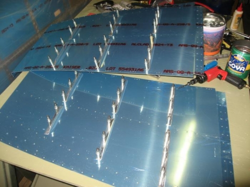 Clecoed the stiffeners to the baggage floors and drilled.