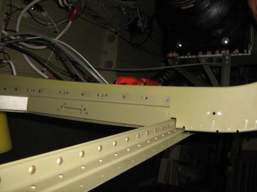 Dimpling and riveting of the nutplates to the baggage bulkhead channel, and priming of the aft side of the corrugations and the baggage side cover.